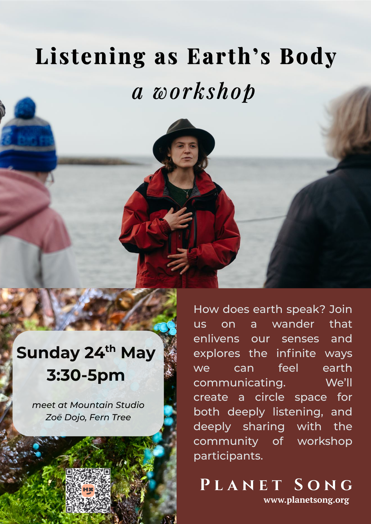 How does earth speak? Join us on a wander that enlivens our senses and explores the infinite ways we can feel earth communicating. We’ll share playful movement and sensing invitations, inspired and assisted by the soundscape that arises from the landscape. We’ll create a circle space for both deeply listening, and deeply sharing with the community of workshop participants.